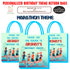 Colorful and Marathon theme based return gift bag personalized with baby name for take away gifts for guests. Made of 225 GSM quality Art board material and it can withstand upto 400g to 600g of weight also will have satin ribbon at the top to hold it (Colour of satin ribbon will be based on availability).