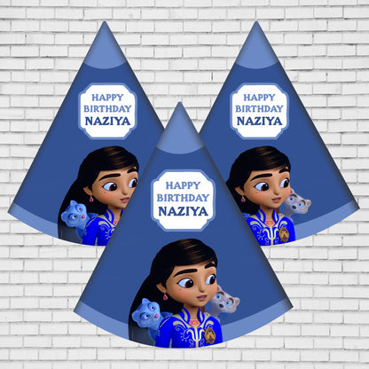 Make your little girl's Birthday extra special with a Party Hat! The caps are theme based and are brightly coloured. There is a stretch cord/string attached just like any party hat you would buy from a store. They can be customized with names or with ribbons to tie the hat.