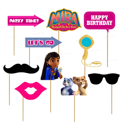 The perfect photo booth begins with fabulous photo booth props. Our printed and cut kit will help you easily create fun party photos at your next celebration. This Mira the Royal Detective prop kit comes with 10 pieces and is ready for quick assembly. Your friends and family will love the fun photos they will create with this amazing Photo Booth Prop Kit.