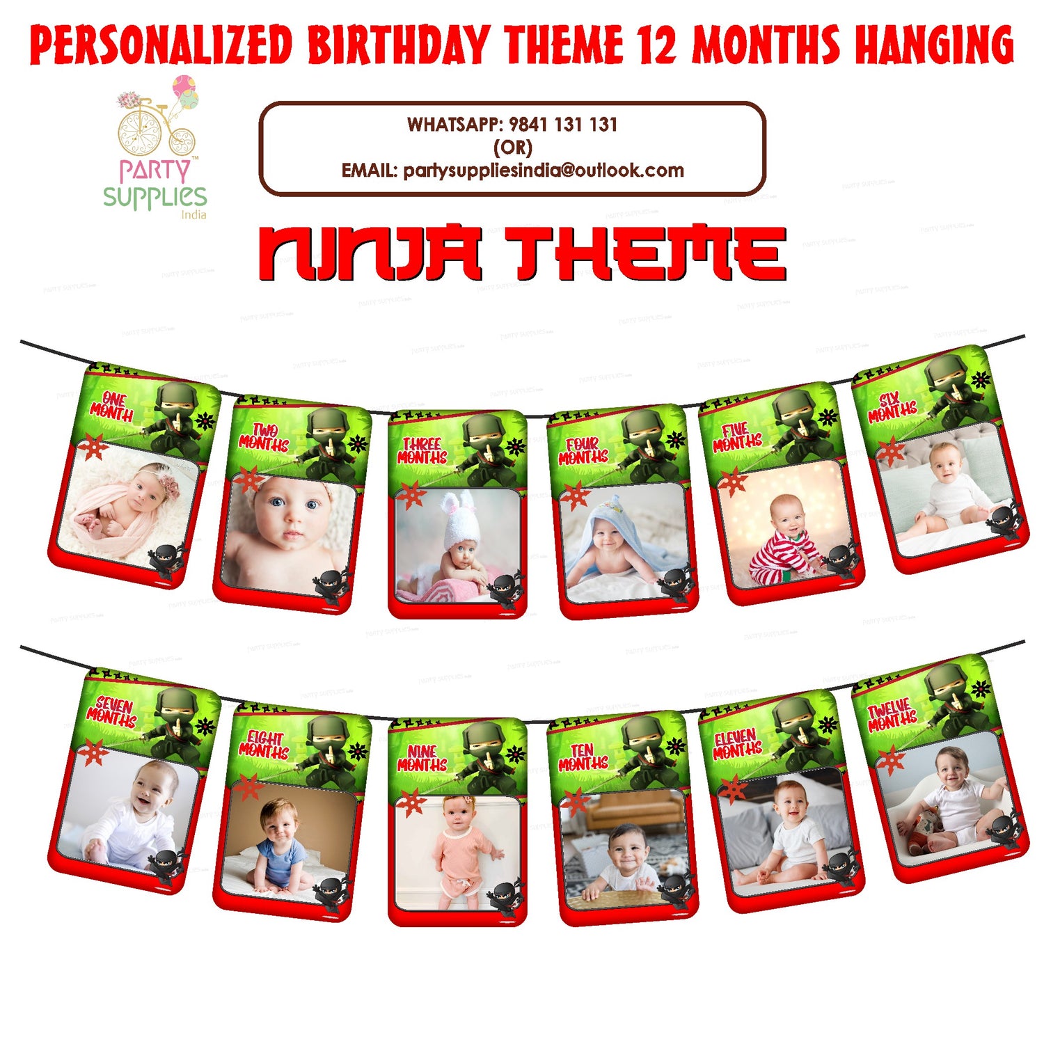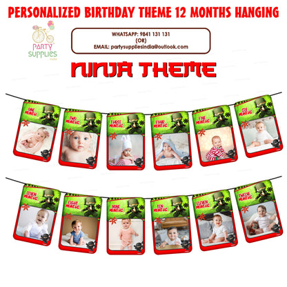 The Ninja theme based photo banner is perfect decoration for baby's 1st birthday party. It’s an eye-catching birthday banner with beautiful color, especially with lovely photos of your baby on it which is a special way to bringing a unforgettable and memorable party. This 12 Months Birthday Banner is made of 225 GSM quality Art board material. This package contains 1 set photo banner with ribbon. Size of each month banner will be 6 inches of width and 9 inches of height.