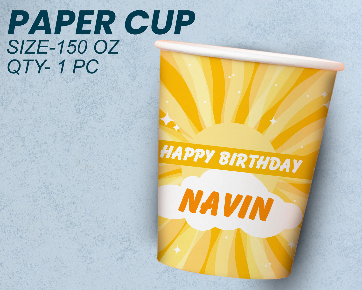 Printed party cups, plates, and plain spoon combo birthday party supplies for themed parties are available with us. They are disposable and made of eco-friendly materials. Our plates are made of thick paper, with theme-based customization including baby details added, designed, printed, and pasted onto the plates and cups as shown in the reference images. They will be available only in combo sets in the below-mentioned variants.