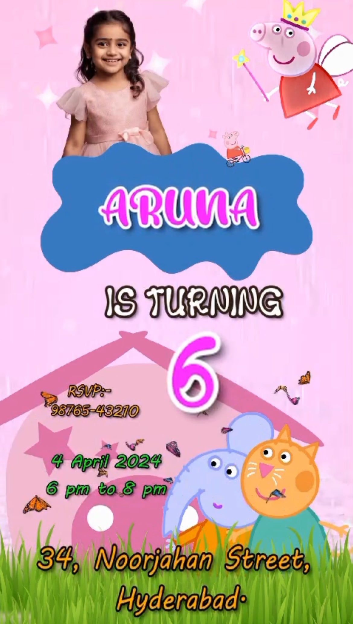 Calling all birthday kids, this Peppa Pig themed birthday party invitation is for you! Let us help you celebrate in style with this colorful birthday party invitation featuring a pretty multi-coloured graphics.