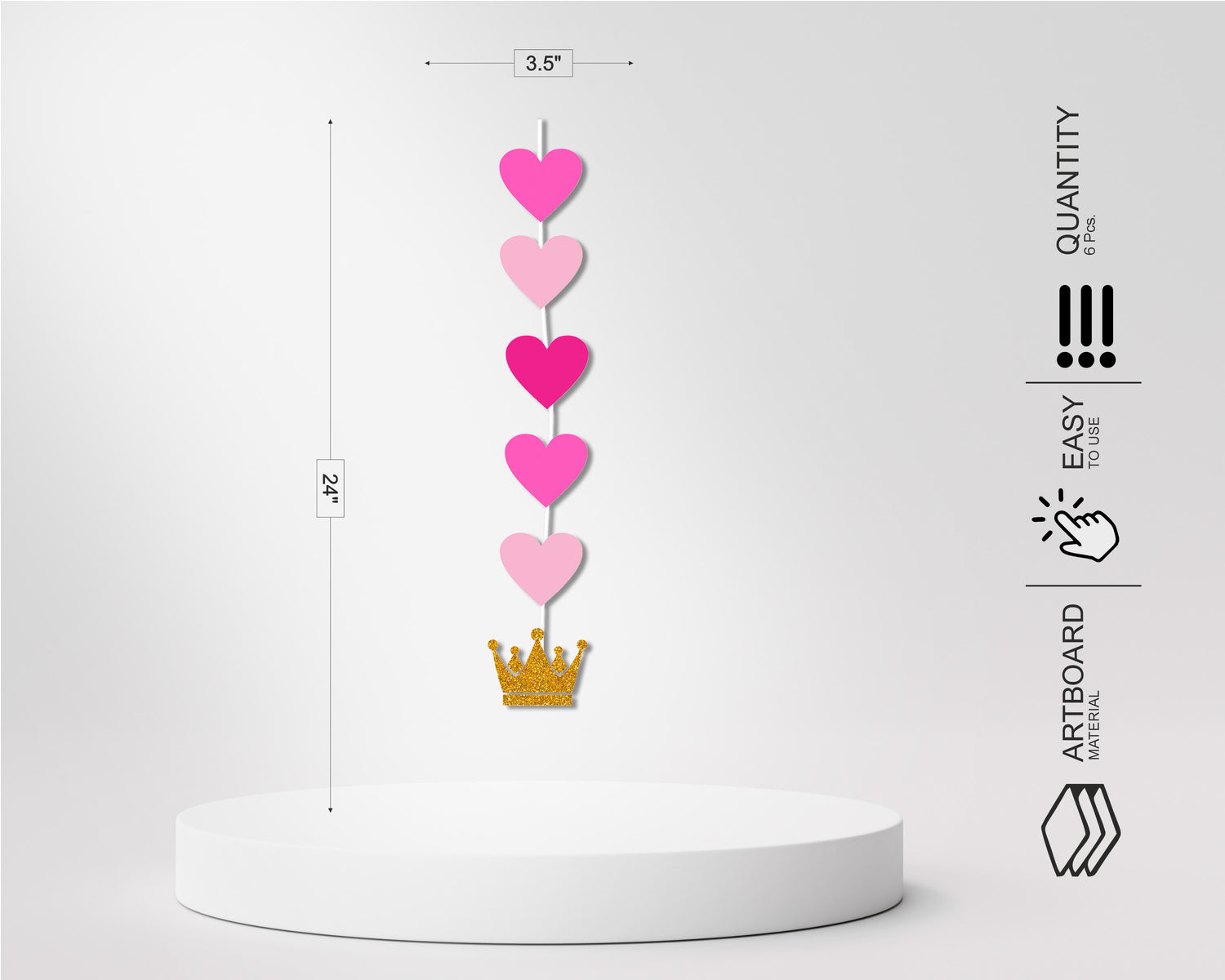 These cute danglers will be the perfect add on to the Princess Theme party. The danglers hang from the ceiling and can be placed anywhere. You will receive 3 danglers with shiny ribbons. You may hang them at different heights for a delightful effect.