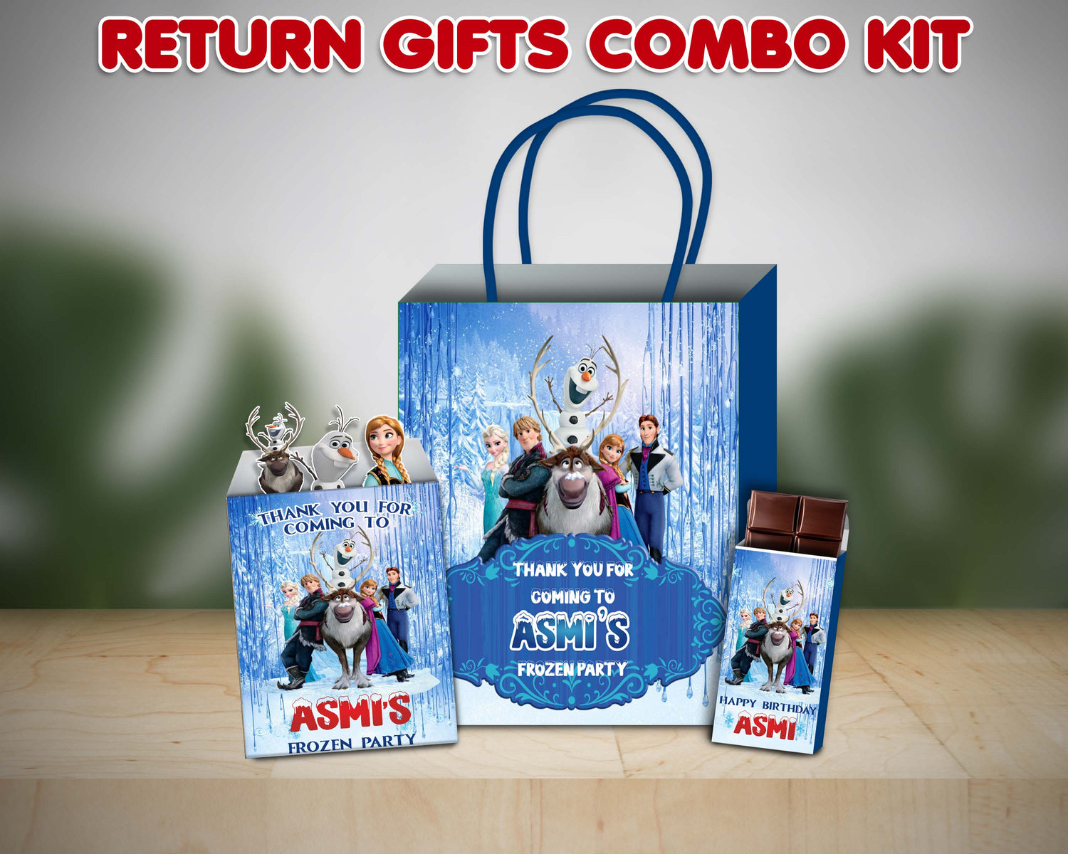 Combo pack preferred for return gifts. This combo contains one of each product. Choose the size of bag which is required from the options shown in the variant. Also choose the chocolate variants white or milk from the variants shown below. No variant option for magnetic pack you will get one pack of theme based magnetic stickers pack according to the quantity you choose to buy.