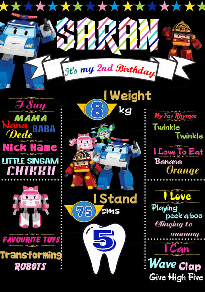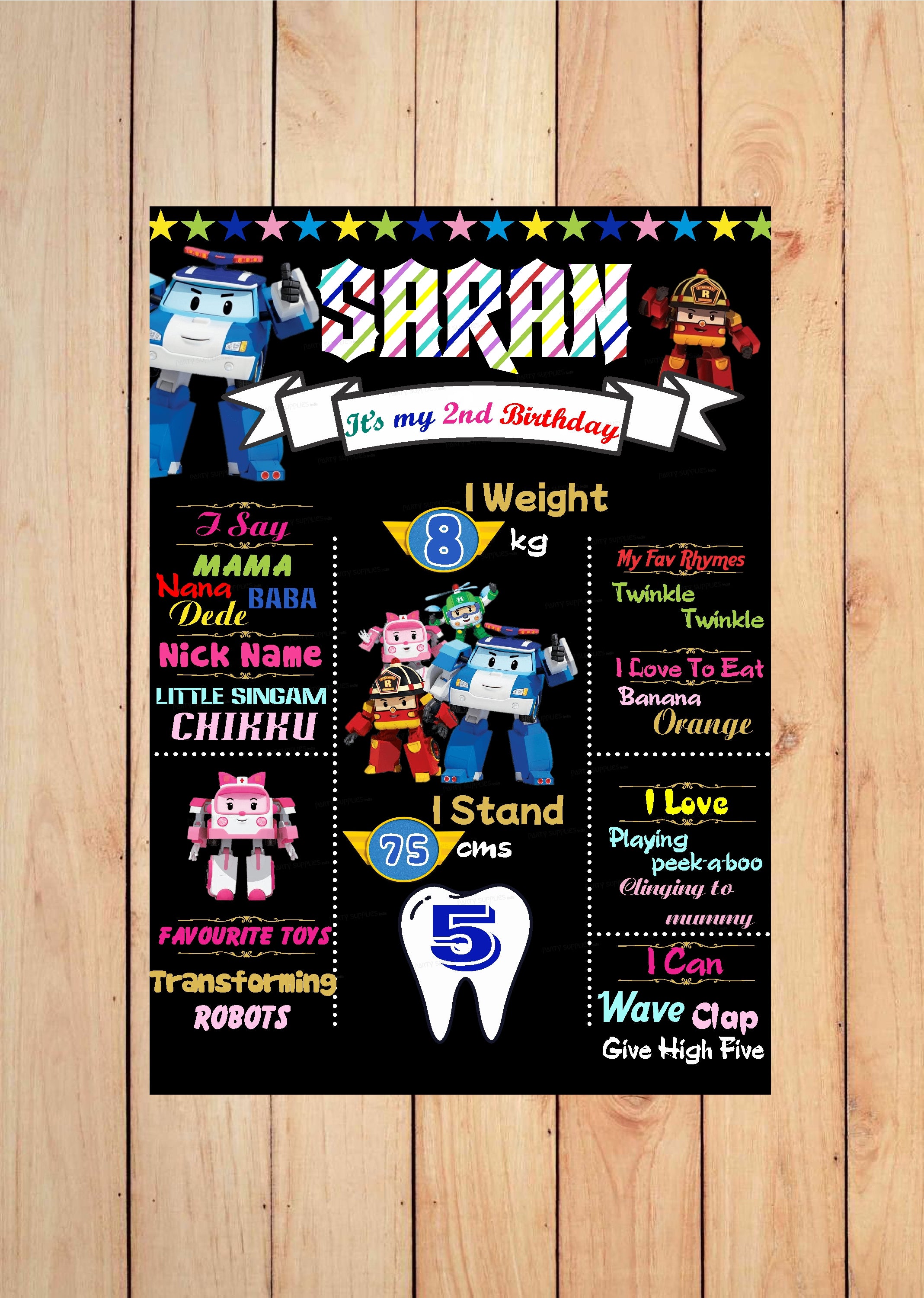 Robopoli theme based Chalk Board can provide visualize data on their status for kids' lot of choices and hobbies displayed . The information can create more fun mode of birthday party themes.. It comes with different variant sizes.
