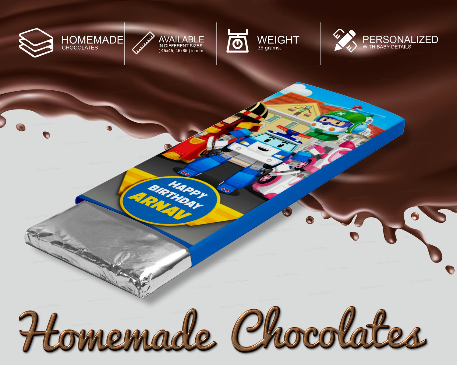 Introducing our Robo Poli theme-based chocolates, perfect for your return gifts! These delicious chocolates are available in a variety of flavors