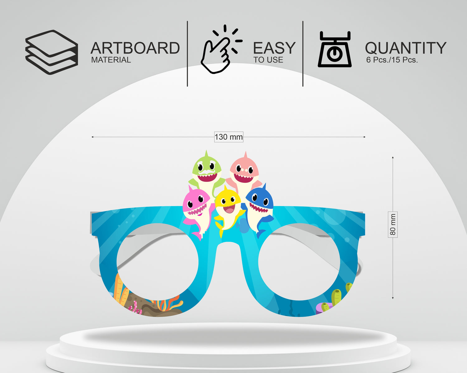 Shark Boy Theme based eye glasses made of thick paper material for kids birthday party celebrations. This paper goggles suits perfect for kids.