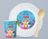 Printed party cups, plates, and plain spoon combo birthday party supplies for themed parties are available with us. They are disposable and made of eco-friendly materials. Our plates are made of thick paper, with theme-based customization including baby details added, designed, printed, and pasted onto the plates and cups as shown in the reference images. They will be available only in combo sets in the below-mentioned variants.
