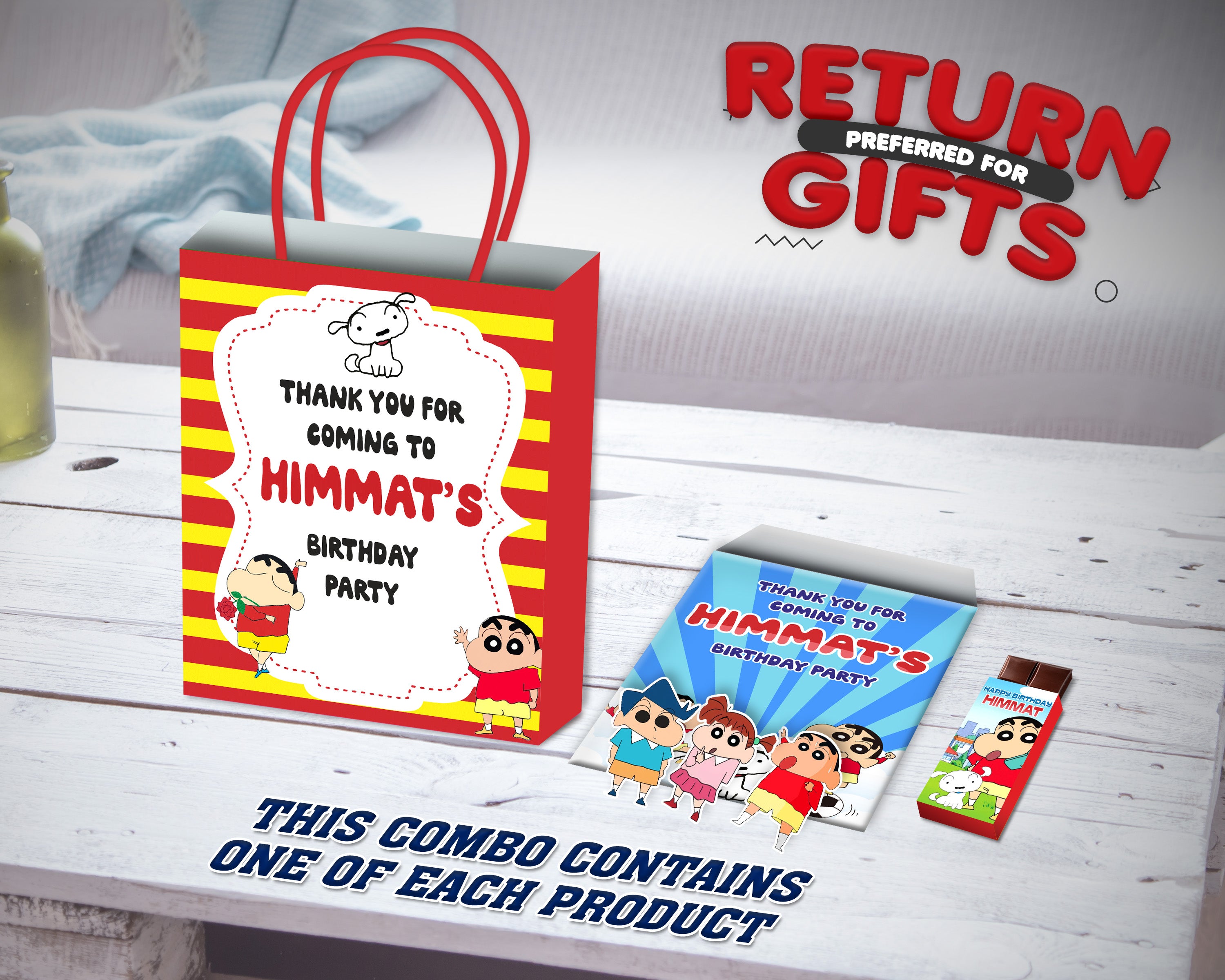 Combo pack preferred for return gifts. This combo contains one of each product. Choose the size of bag which is required from the options shown in the variant. Also choose the chocolate variants white or milk from the variants shown below. No variant option for magnetic pack you will get one pack of theme based magnetic stickers pack according to the quantity you choose to buy.