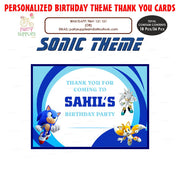 Birthday parties are fun! Send your birthday party memories in style with our theme based Sonic the Hedgehog Thank you Cards personalized with baby name. Made of 225 GSM quality Art board material. Size will be 6x4 inches. It comes with different variants in quantity (18 Pcs. & 36 Pcs.)