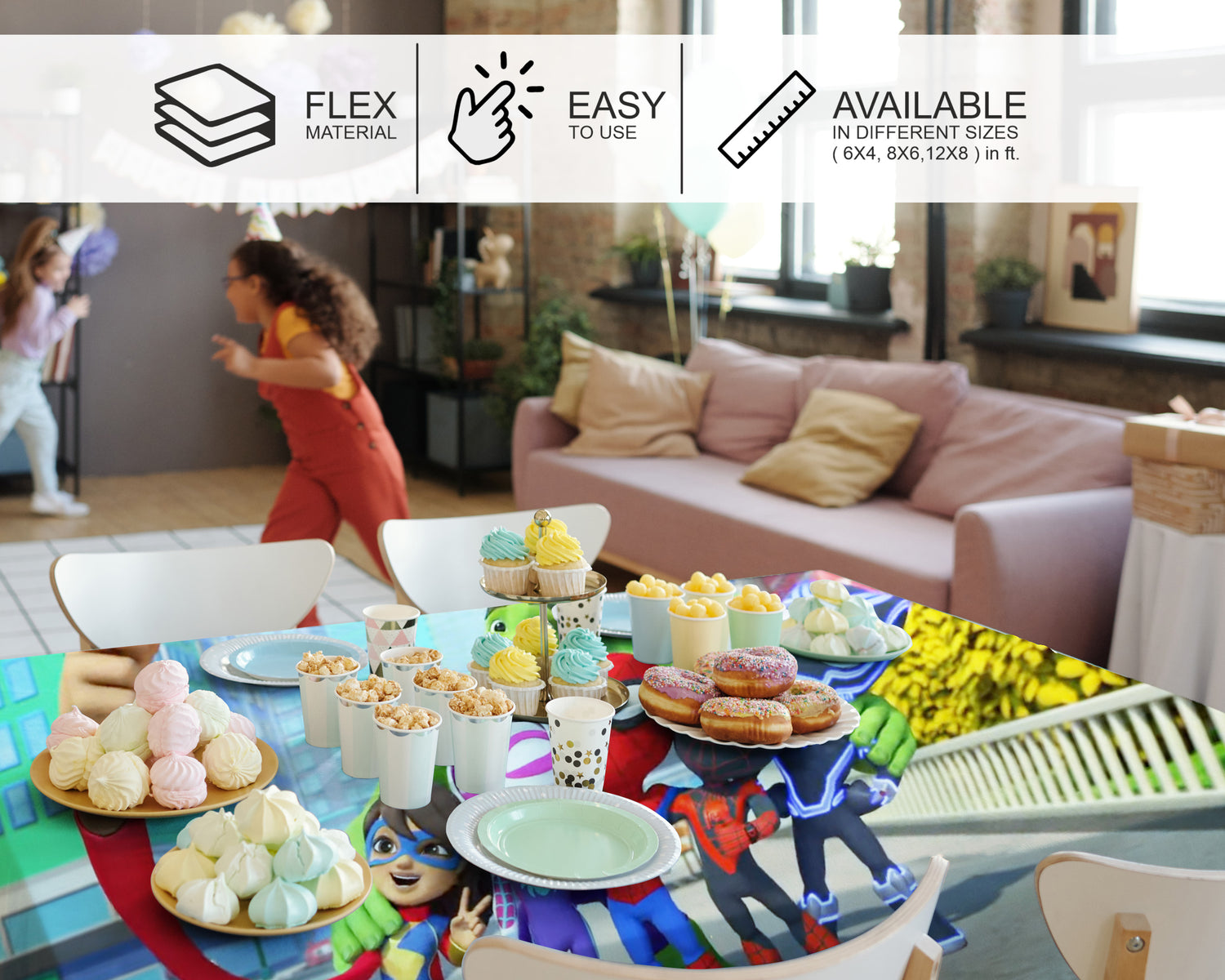 Premium Flex Material Cake Table Cover is Elegant, easy to clean, and lightweight. This theme-based cover features attractive designs,