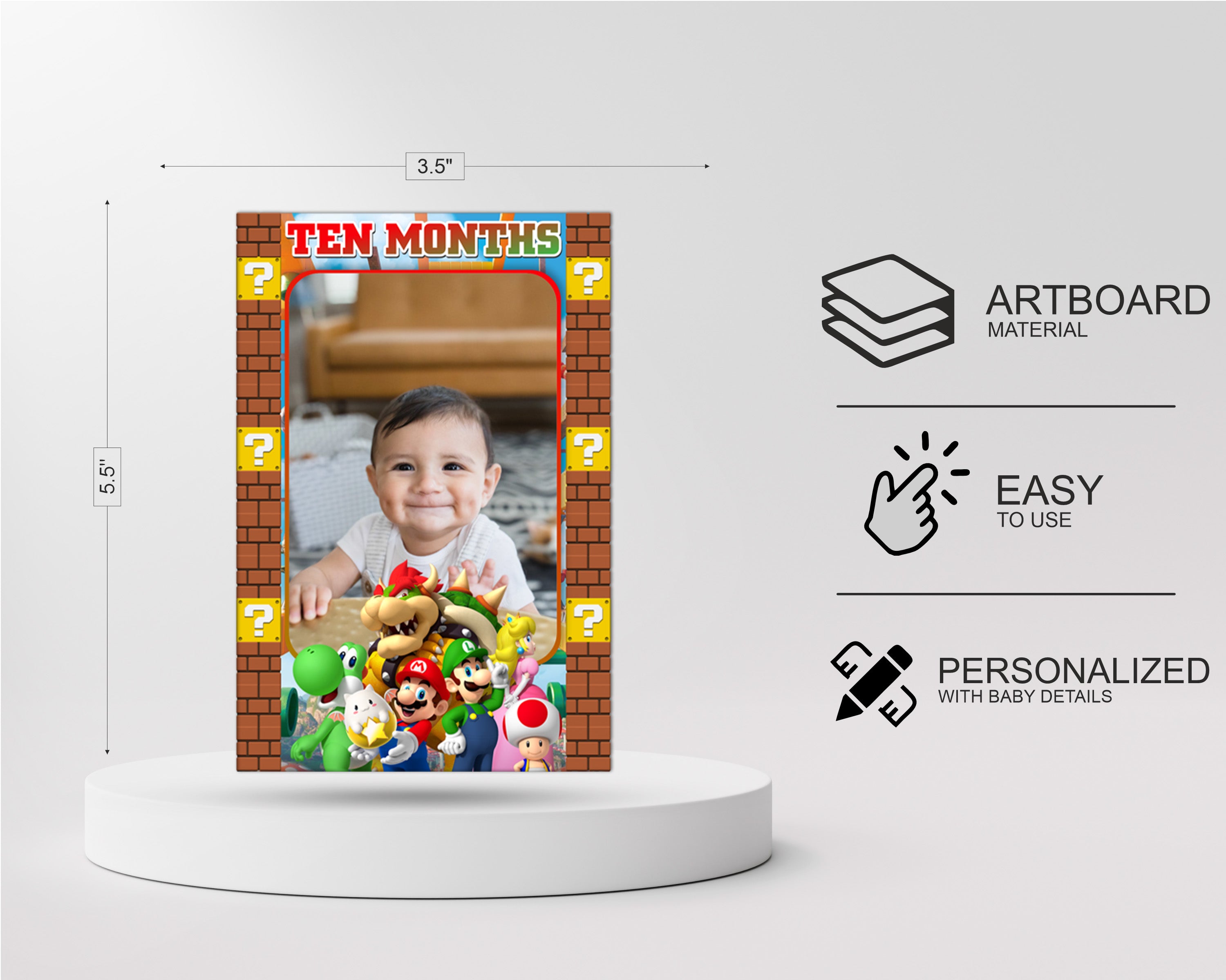 The Super Mario theme based photo banner is perfect decoration for baby's 1st birthday party. It’s an eye-catching birthday banner with beautiful color, especially with lovely photos of your baby on it which is a special way to bringing a unforgettable and memorable party. This 12 Months Birthday Banner is made of 225 GSM quality Art board material. This package contains 1 set photo banner with ribbon. Size of each month banner will be 6 inches of width and 9 inches of height.