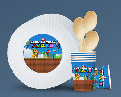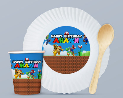 Printed party cups, plates, and plain spoon combo birthday party supplies for themed parties are available with us. They are disposable and made of eco-friendly materials. Our plates are made of thick paper, with theme-based customization including baby details added, designed, printed, and pasted onto the plates and cups as shown in the reference images. They will be available only in combo sets in the below-mentioned variants.