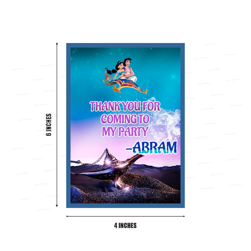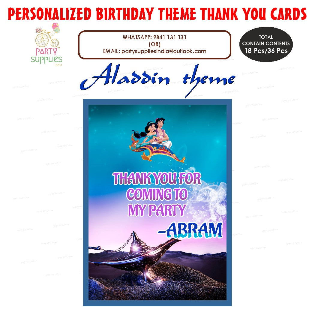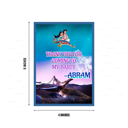 Birthday parties are fun! Send your birthday party memories in style with our Aladdin theme based Thank you Cards personalized with baby name. Made of 225 GSM quality Art board material.
