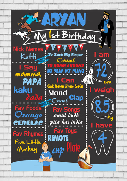 Chalk Board is a great way of cherishing the baby's likes, the milestones in their growth. A Chalk board would be a gift for your kid forever. Based on the Tin-tin theme, you can help us customize it with fine details. You can also choose the pictures .