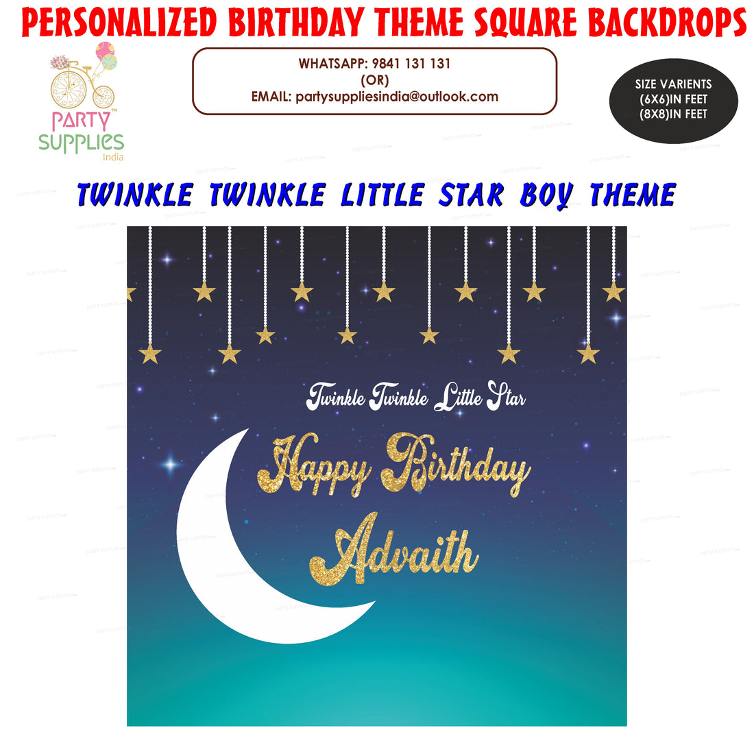 Twinkle Twinkle Little Star Boy Theme Customized Square Backdrop- Regular price