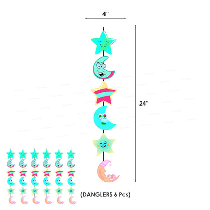 Whether decorating an at-home party or renting a party room, guests will be wowed with your attention to detail when you decorate your Twinkle Twinkle Little Star Party with our Room Decoration Kit. Twinkle Twinkle Little Star Decoration Kit includes party decoration swirls, indoor door decor banner, and Twinkle Twinkle Little Star themed DIY party essentials. Hang the vertical hanging banner to entrance of the party and add the shaped paper cut-outs to the edges of tables or scatter across the top of tables and countertops. Then, hang the Twinkle Twinkle Little Star swirls from the ceiling to bring the whole room together.