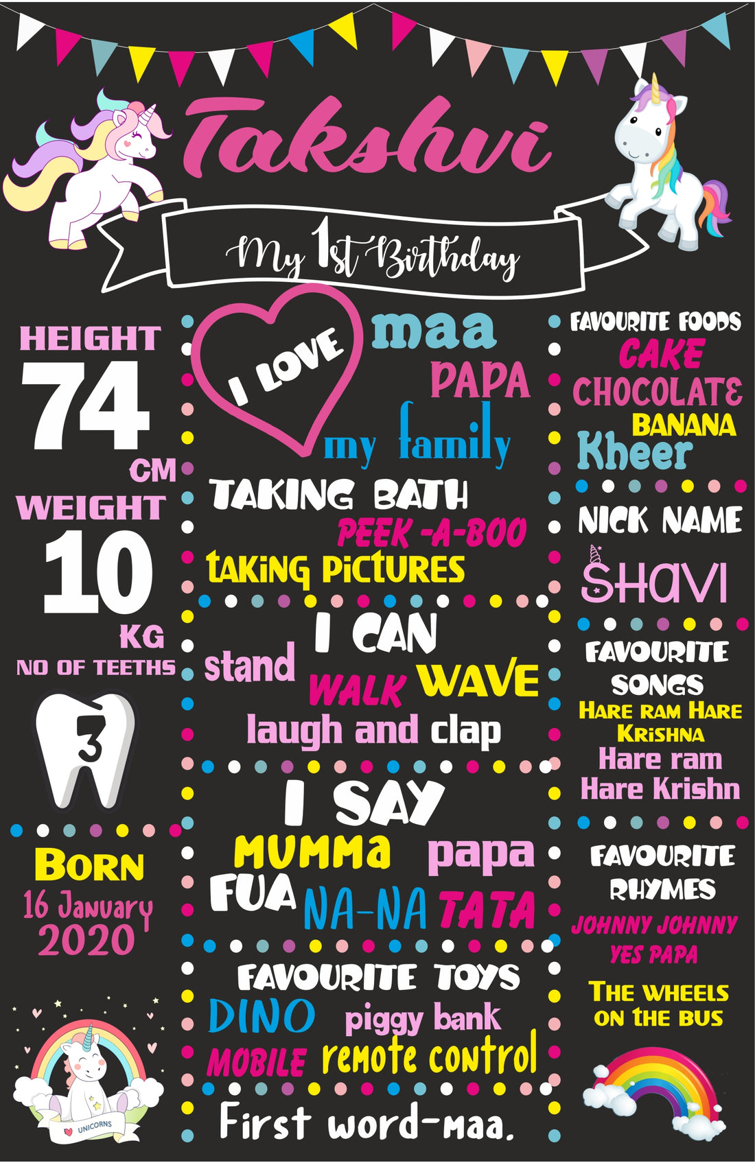 Unicorn Theme Customized with Baby Age Hanging- Regular price