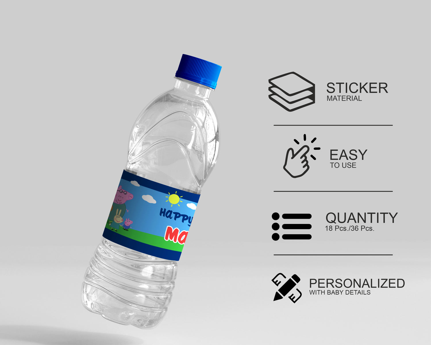 Peppa Pig Theme Customized Water Bottle Sticker