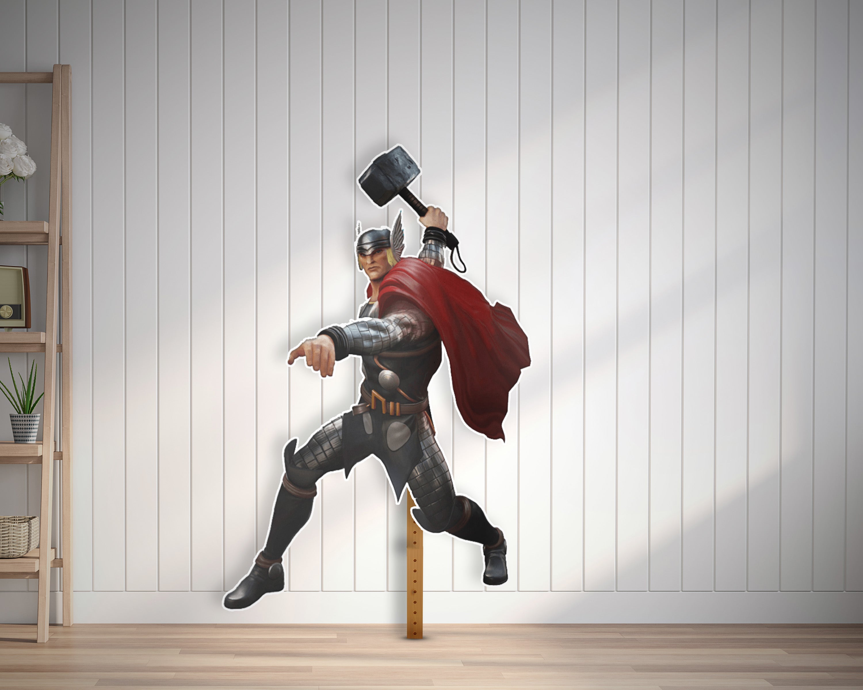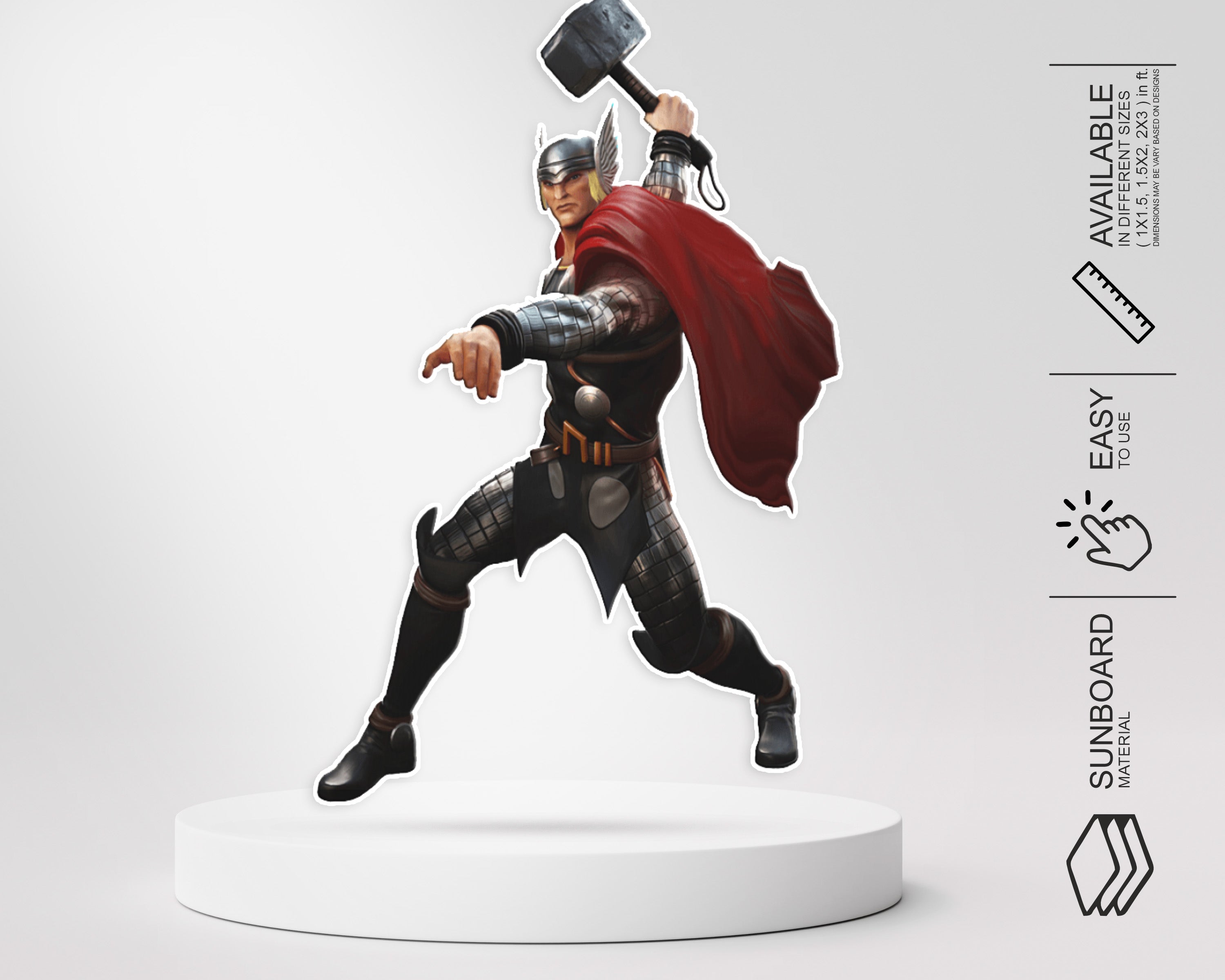 Make your Avengers party decor a knockout with this Thor Cardboard Cutout. Not only is this a kick-butt addition to your Avengers decorations, but it also doubles as a fun photo prop. Strike a pose next to our easy-to-assemble Thor cardboard cutout!