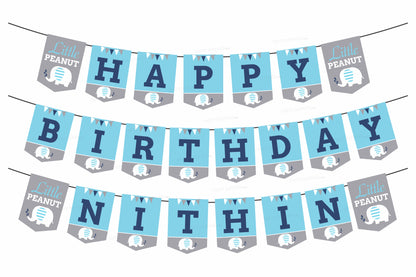 Give their very first birthday a special accent when you hang this adorable blue Elephant 1st Birthday Garland. With a variety of pennant and flag shapes, this garland will look adorable draped on a wall, over a window or wherever you need a little sprucing up. Can be personalised with the kid's name.