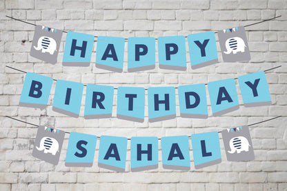 Give their very first birthday a special accent when you hang this adorable blue Elephant 1st Birthday Garland. With a variety of pennant and flag shapes, this garland will look adorable draped on a wall, over a window or wherever you need a little sprucing up. Can be personalized with the kid's name.