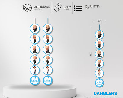 A new baby's arrival impacts a family, told from the point of view of a delightfully unreliable narrator -- a wildly imaginative 7-year-old named Tim. The most unusual Boss Baby (Alec Baldwin) arrives at Tim's home in a taxi, wearing a suit and carrying a briefcase. The instant sibling rivalry must soon be put aside when Tim discovers that Boss Baby is actually a spy on a secret mission, and only he can help thwart a dastardly plot that involves an epic battle between puppies and babies.. The story line is quite an imagination. The babies these days are truly Bossy. Celebrate the birthday of your Boss Baby with the decor personalized with his photo and details. Heritage Kit is Available for Boss Baby Theme.