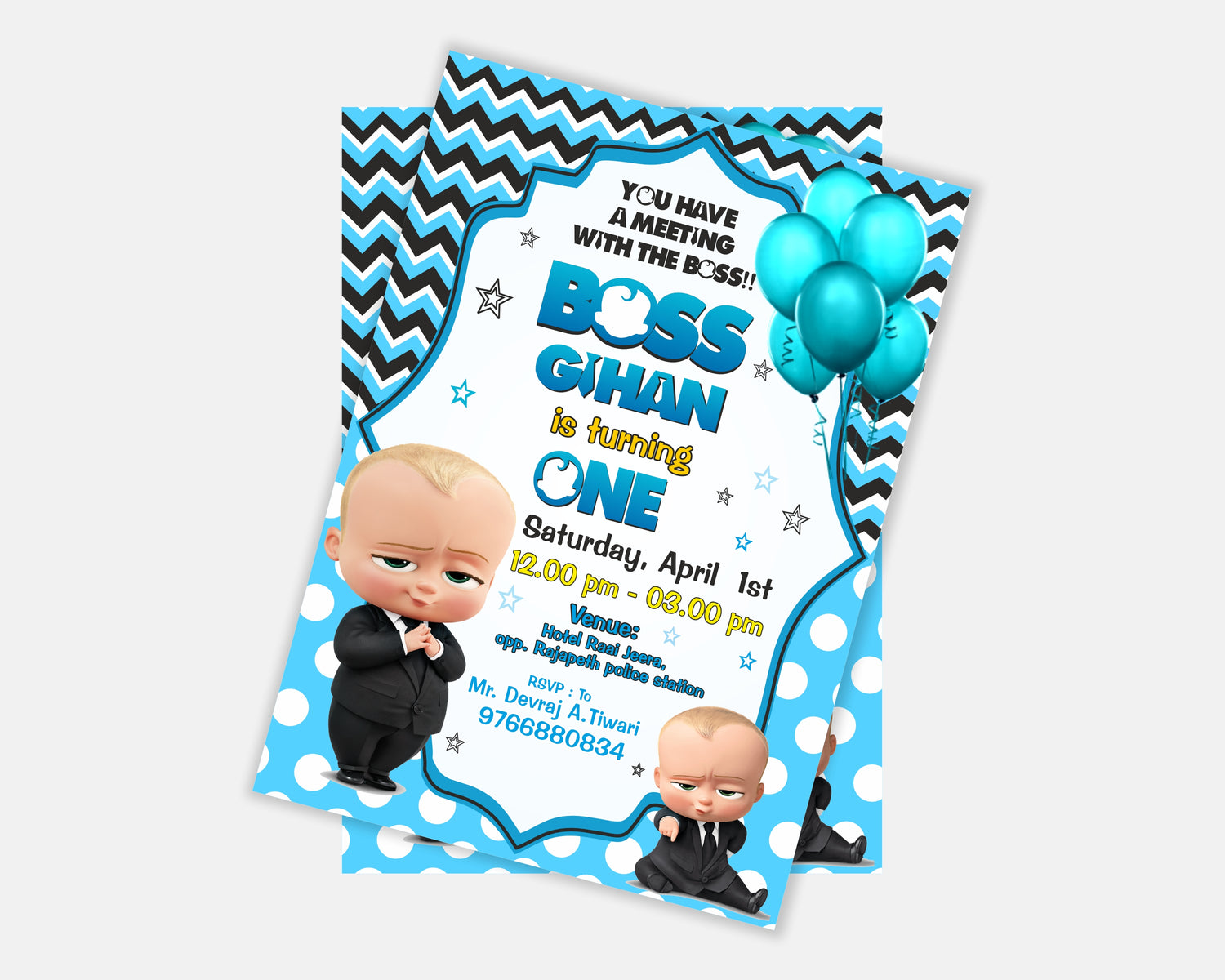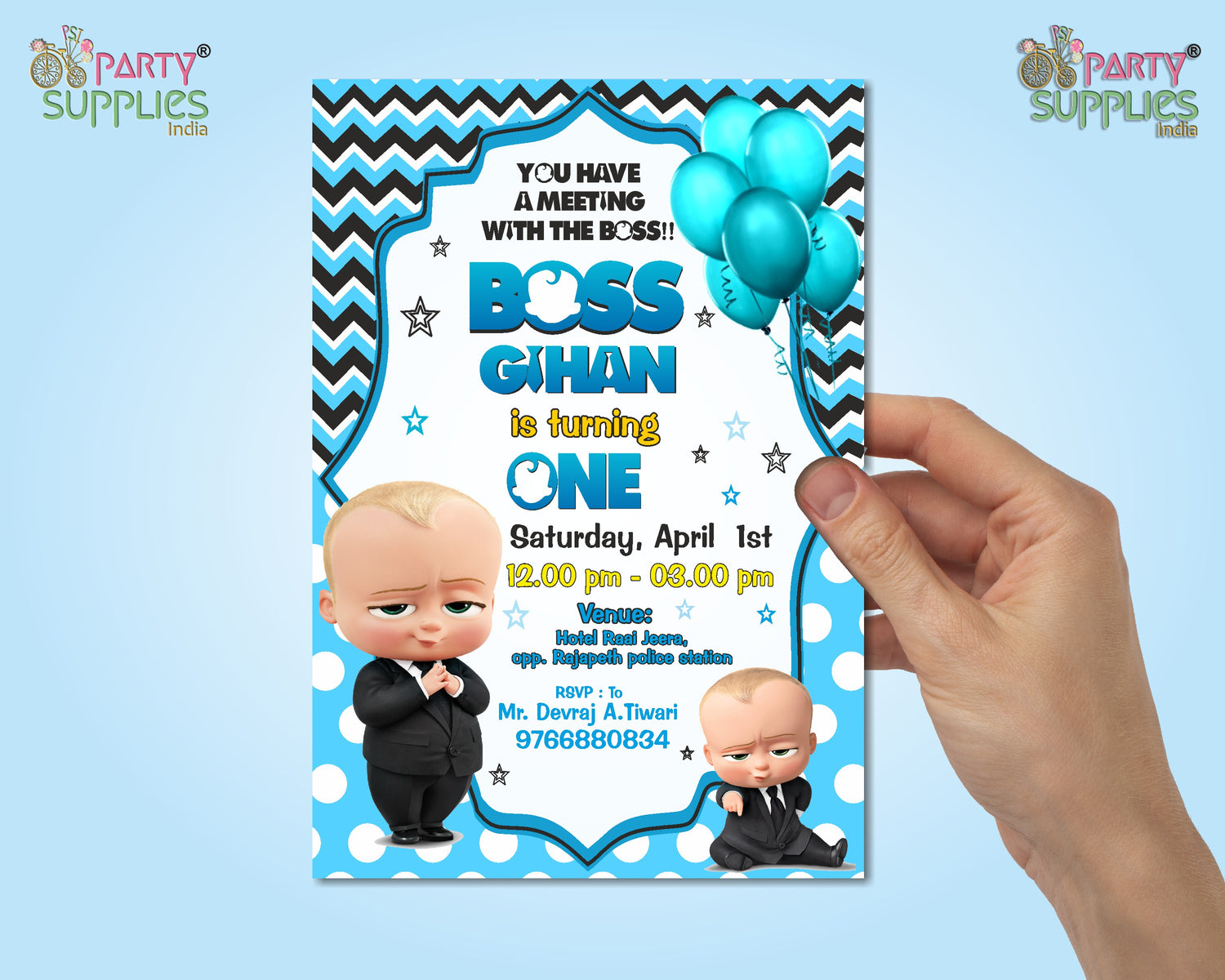 Let us start the birthday bash with the party invite. The theme based invite would help the invitees be prepared with mood set for a wonderful party. The Boss Baby party invite can be personalised with your kid's name ,family details , date, venue and more details as well. Since the invite is customized and printed in-house we do not provide envelop.
