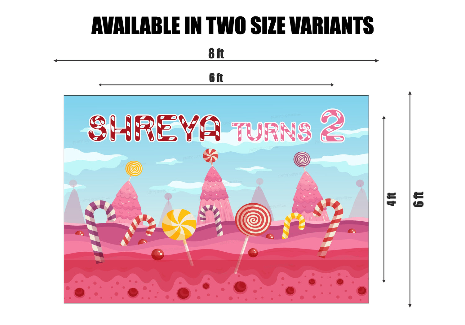 This candy themed backdrop with jelly beans, lollipops, and candy with candy based typography is a colourful one to make kids and everyone see the Candy land spread before them.