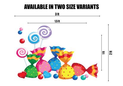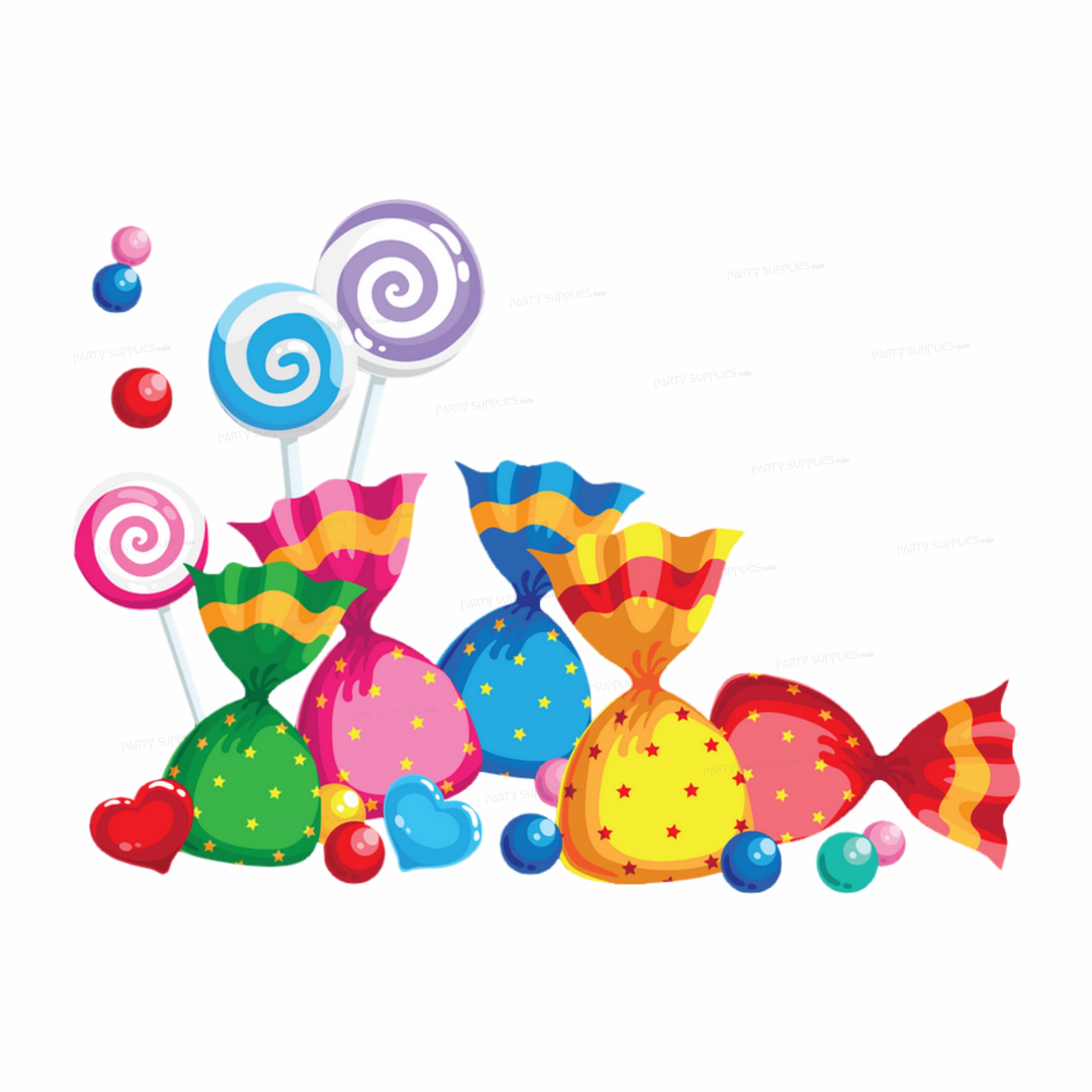 The theme based cut out depicting candies wrapped in colourful paper on art board (300gsm) should for sure be a part of the decor. These cutouts add colour to the party.