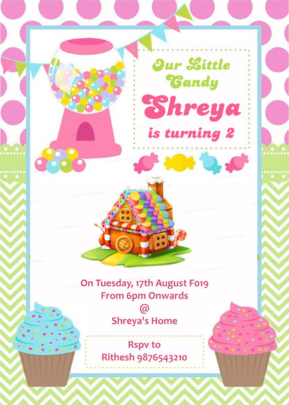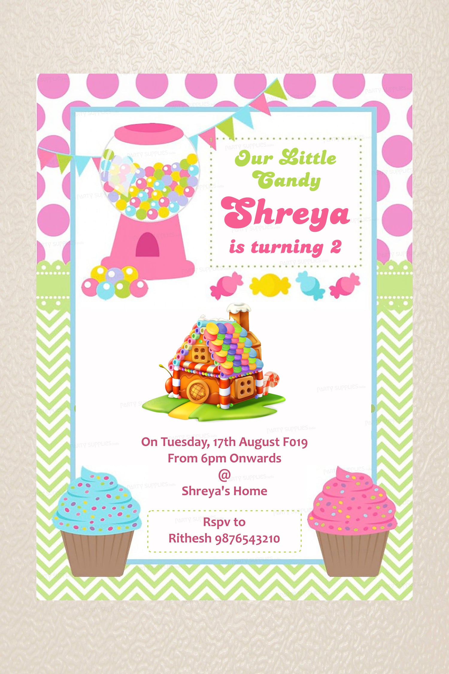 Start your Candy Theme Party off right with these fun invitations! The bright colors and fun candy illustrations will make your guests so excited about your upcoming, candy-filled event. The invitations feature original illustrations of lollipops, gumdrops and of course a Candy land style path. Other matching items are also available to help you make a perfectly coordinated party. Since the invite is customized and printed in-house we do not provide envelop.