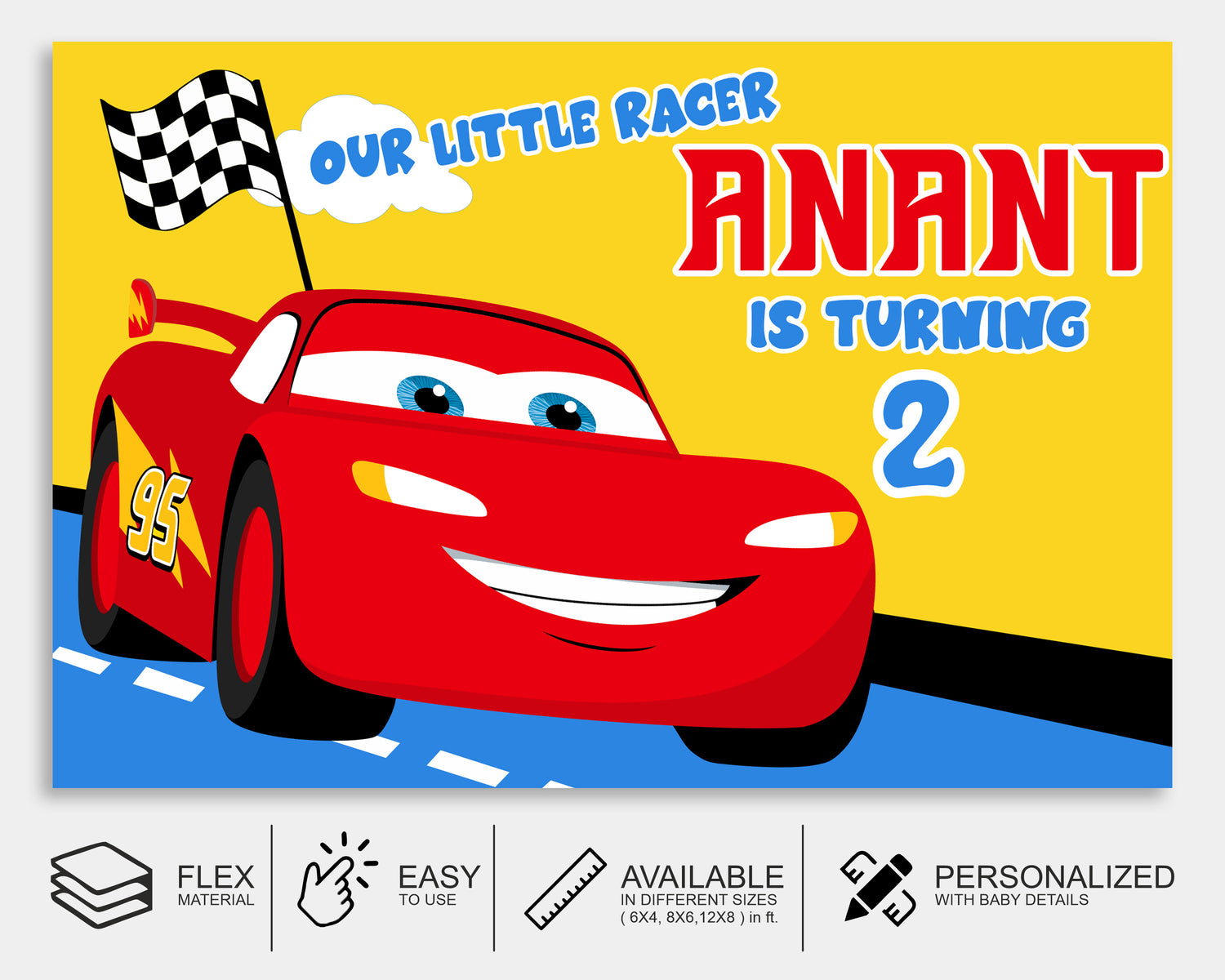 Disney Cars have come to your party to celebrate with this beautiful backdrop. This backdrop features the beautiful Disney Car, plus a beautiful frame to wish Happy Birthday to the birthday boy. You can also add few props to this Backdrop to create the perfect setting for photos or for cake table.