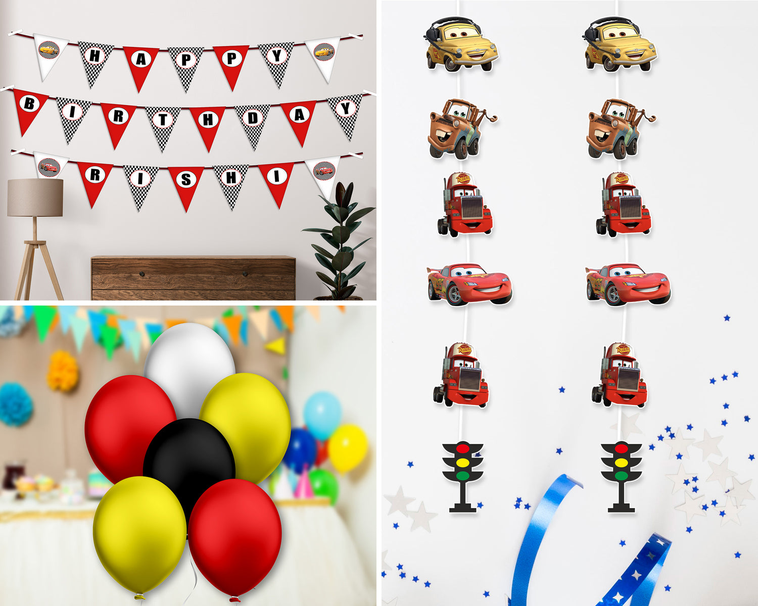 Get ready for adventure! Take a drive down Route 66 and pull into Radiator Springs for a Lightning McQueen themed boy’s birthday party. If you are inspired by your son’s love for the Disney Cars movie, this should be the party theme to choose. Treat your party guests to an authentic Cars experience, as the birthday venue was transformed into a magical race inspired party. Right from the Welcome Board to the photo booth , the decor will delight the little race car drivers and their parents. Basic Kit is Available for Car Theme.