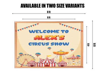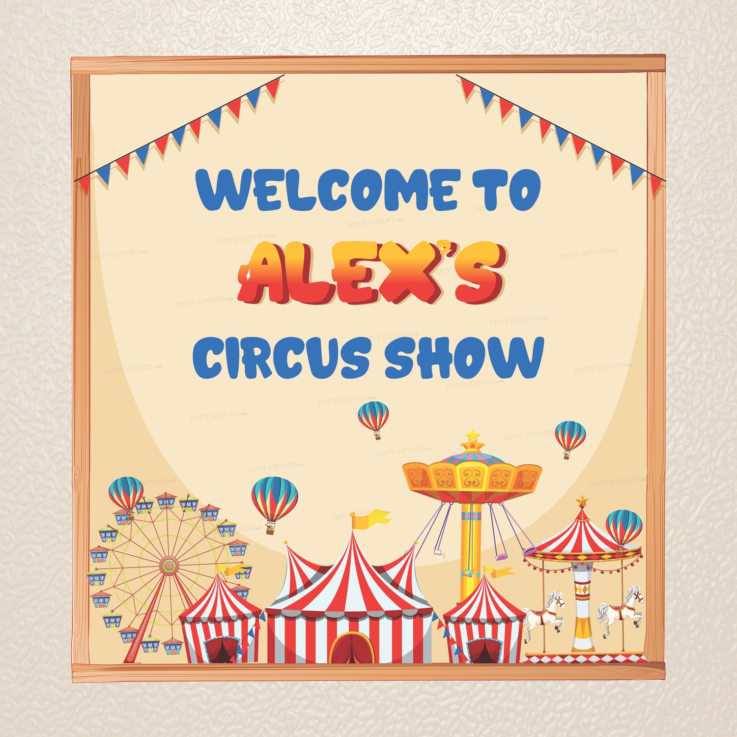 Amaze your guests with this stunning  Circus banner! Banners work great as a wall decoration at your next party, or as a food table decoration, and can even be used as a special keepsake after the event. Each banner is personalized with two lines of text .