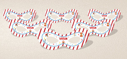 Eye masks go well with the party hats to bring the child in everyone. The Circus themed eye masks and hats would add colour and fun to the photos.