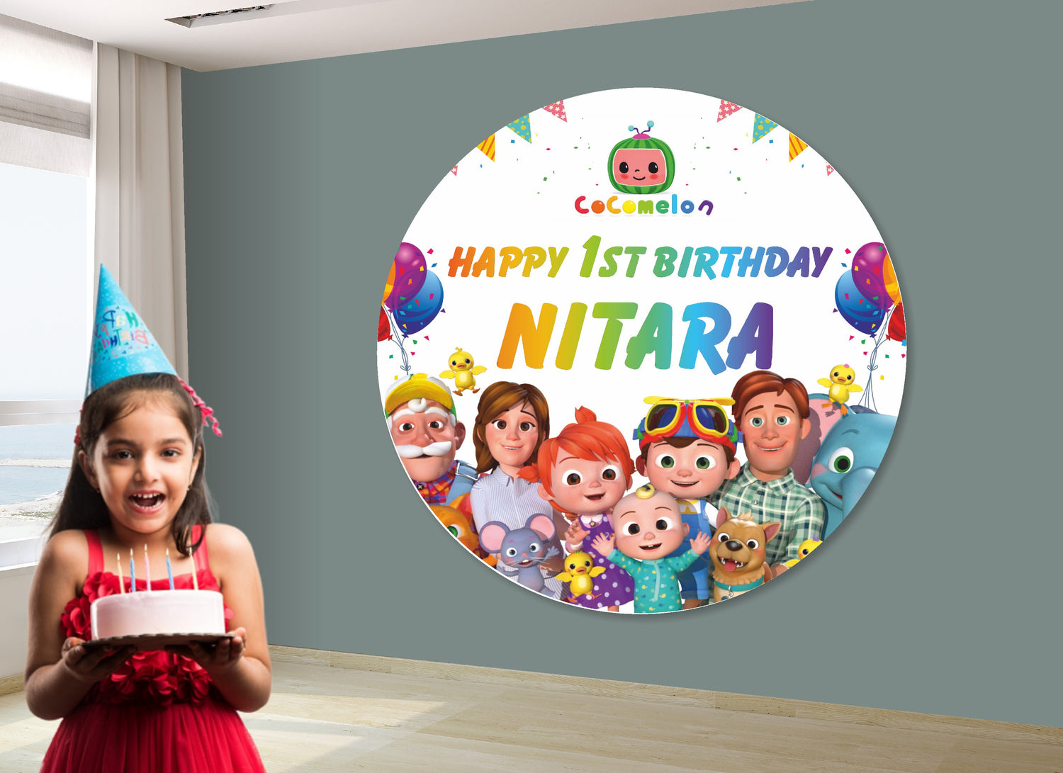 Nischitha PS Coco Melon Theme Girl Personalized Backdrop