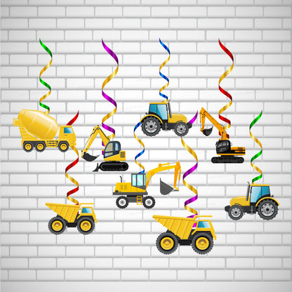 Decorate the ceiling and raise the roof! These Construction Zone Swirl Decorations are perfect decorations for your child's birthday. Featuring black and yellow swirls with card stock attachments like bulldozers, dump trucks, these hanging decorations will get the whole crew ready to party. Hang them by the attached strings to build up the excitement!