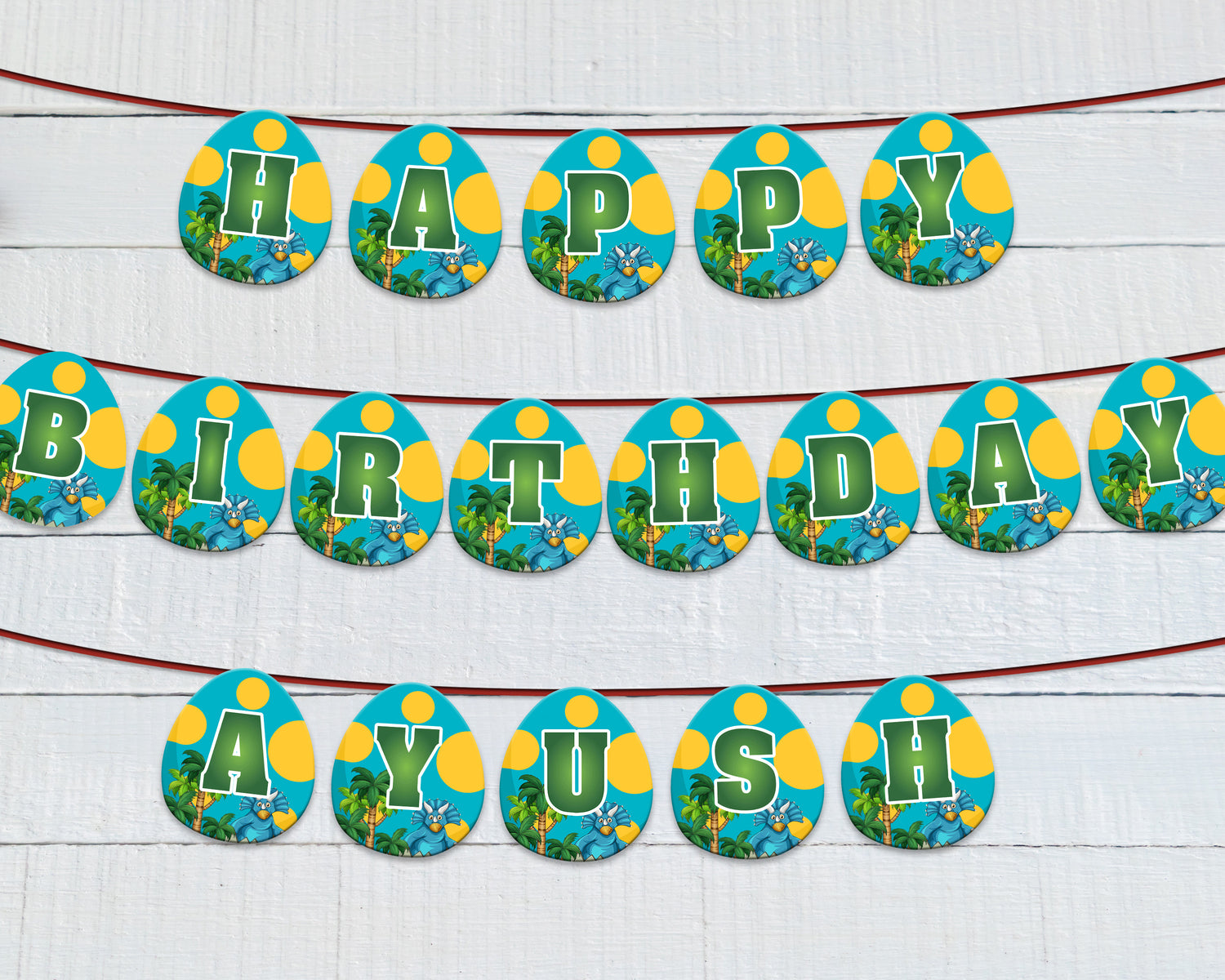 Greet your party guests with an impressive birthday party banner. Dinosaur Banner Decoration is an eye-catching way to decorate for any birthday party. Simply string the script letters onto the included cording and then add the pennant shapes in any order you wish.