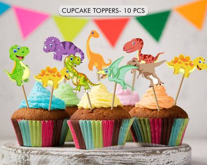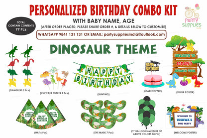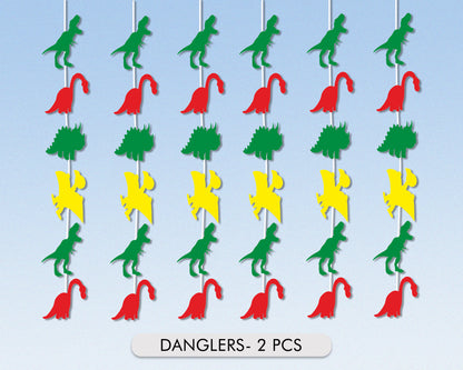 Is it because they are so hugely ferocious or because of the mystery surrounding their extinction or because of their (supposed) resounding roar? Yellow, green, and orange, with contrasting brown accents, coordinate well to provide some prehistoric party ambiance. Celebration pennants hanging and the party hats carry on the fun patterns that were also used for the other decor pieces. Preferred Kit is Available for Dinosaur Theme.