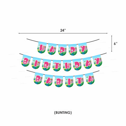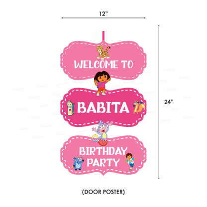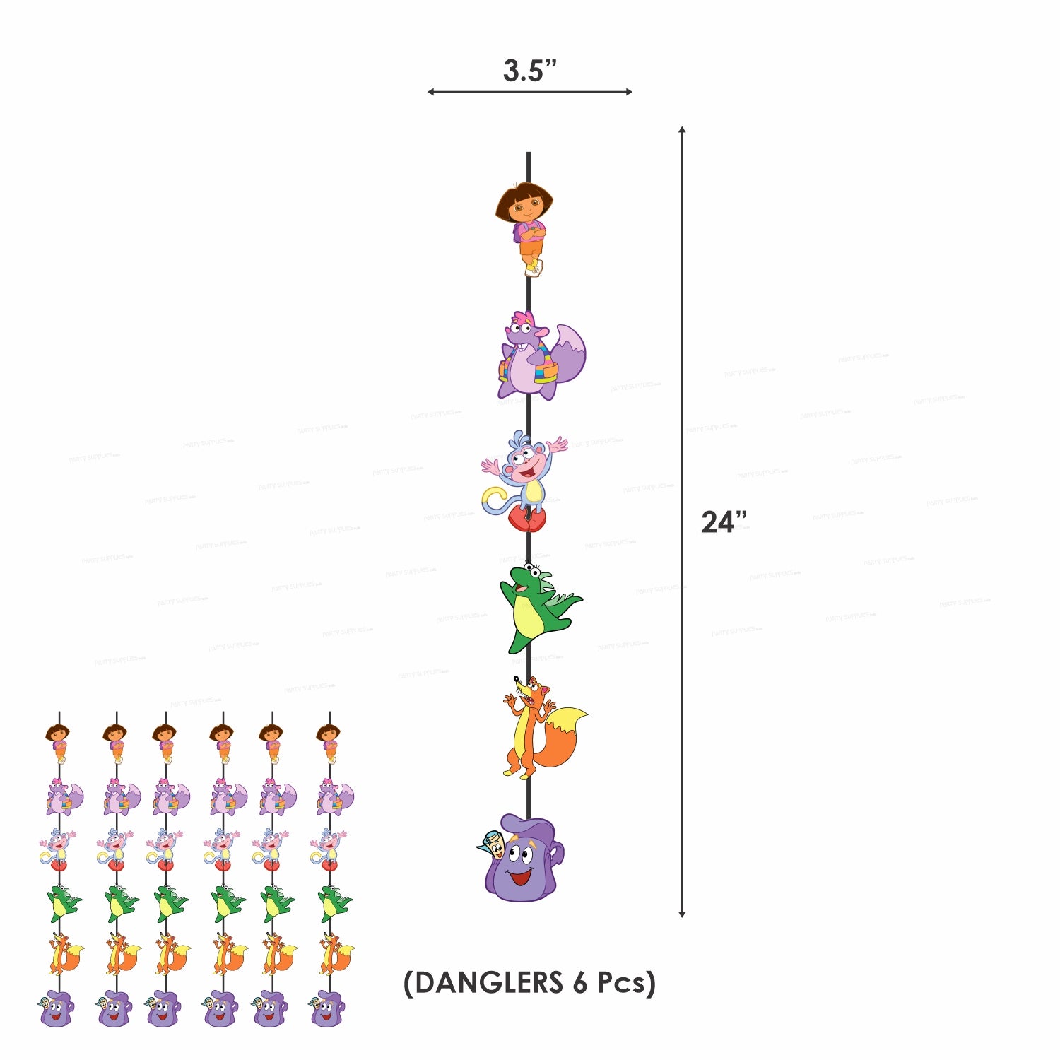 Dora, a seven-year-old girl of Latin American descent, embarks upon numerous adventures in the wilderness with her friend Boots, a monkey, and a variety of fun and useful tools. Dora the Explorer is a 7 year old, Latino girl. Dora uses her knowledge to communicate with her friends, overcome obstacles and reach her goals. The show is often accompanied by a variety of Dora's friends -- Isa the Iguana, Boots the monkey, Benny the Bull, the Fiesta Trio (a bug band), Señor Tucan, Tico (a squirrel), Swiper the Fox and Dora's Map and Backpack. The theme is an all time hit among kids at their party. The decor and supplies include all items to make your party grand.