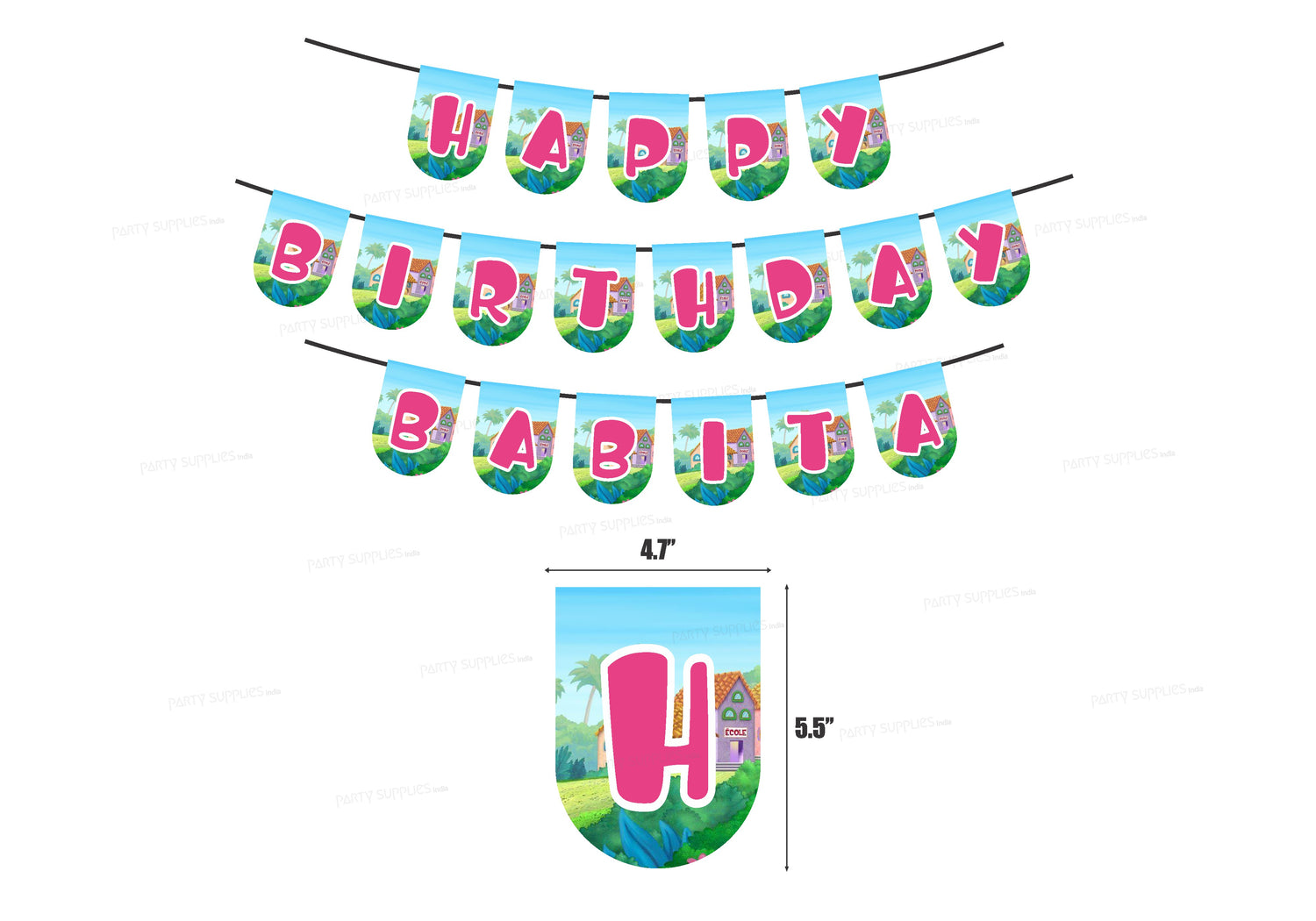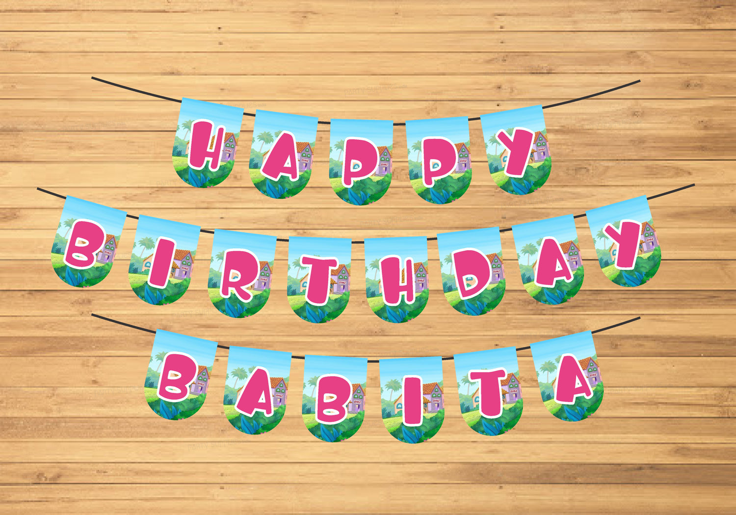 Begin styling an impressive birthday party when you choose a personalized bunting banner! The vivid colors and fun design will greet all of your party guests as they enter. Bold cheerful banner wishes a Happy Birthday for everyone. Whether hung in a living room, entrance way, outdoors or in a banquet hall, this special bunting can be used for a special party. We will also customize a banner just for you. We can make bunting with any greetings, names, or letters that you would like.