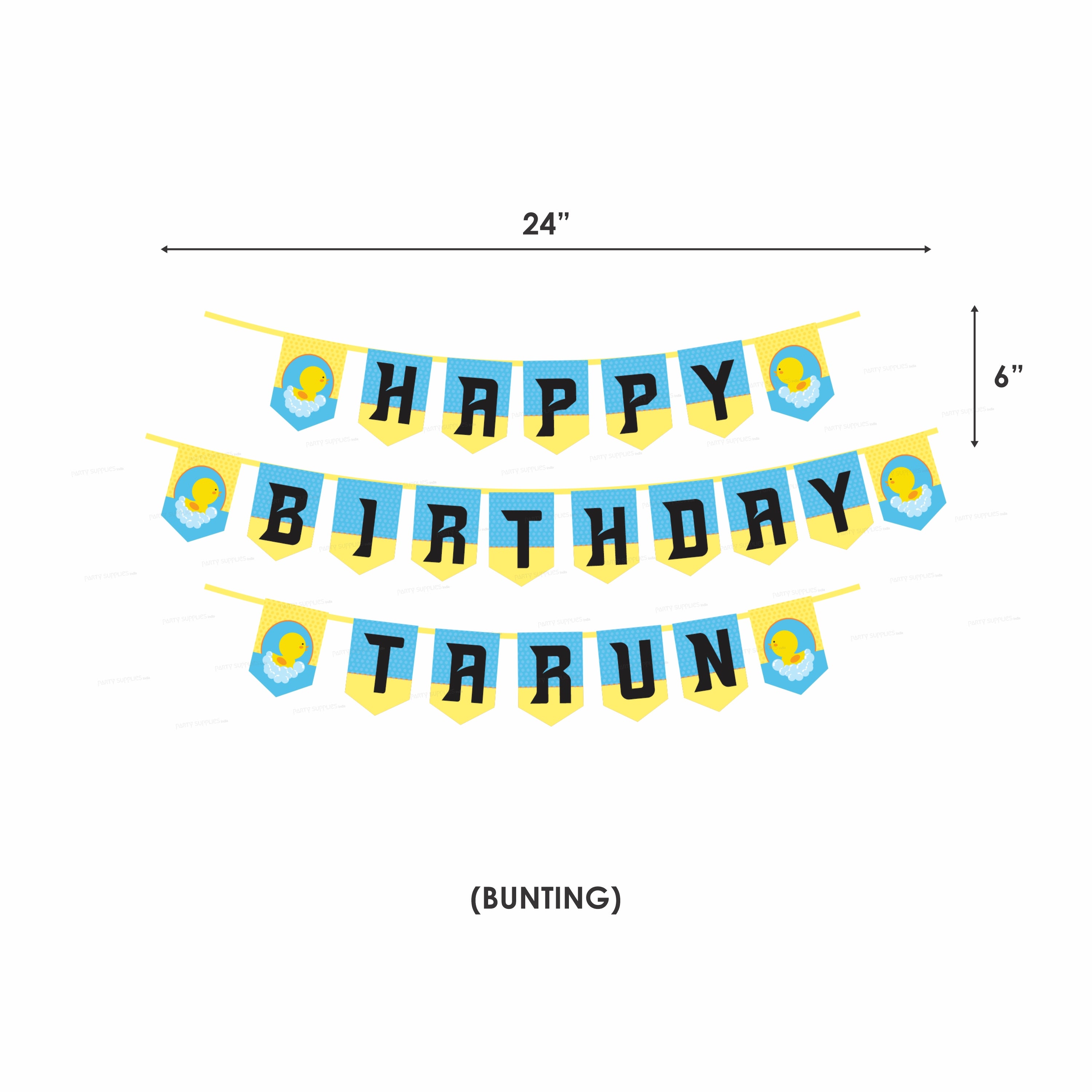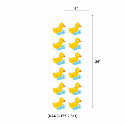 With their bright color, smooth texture, and (for some) squeaky or quacky sounds, rubber ducks sharpen toddlers' senses. Their presence in the bathtub soothes youngsters' fears of water and water immersion and makes good clean fun of the routine hygiene they are learning. Most toddlers become friends with their Ducky ducks. This casual Duck themed party decor will bring out memories of adults and grown up kids. Basic Kit is Available for Duck Boy Theme.