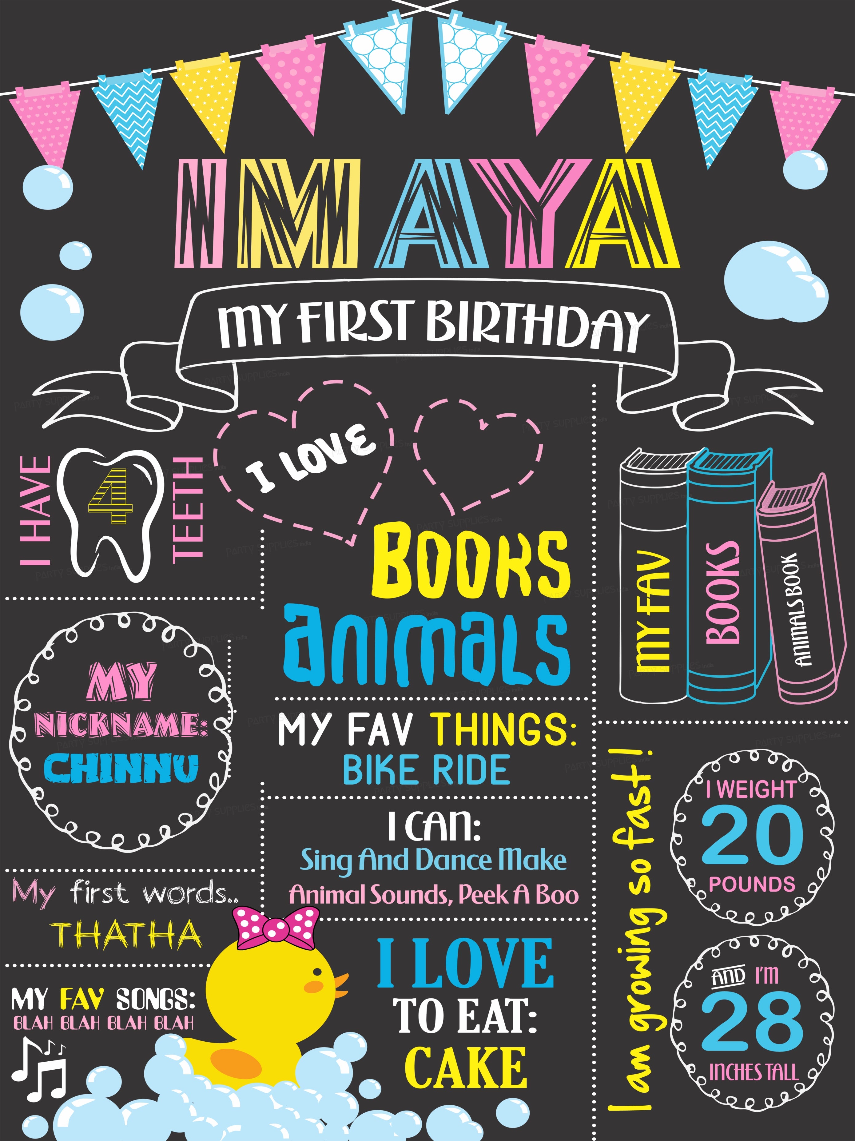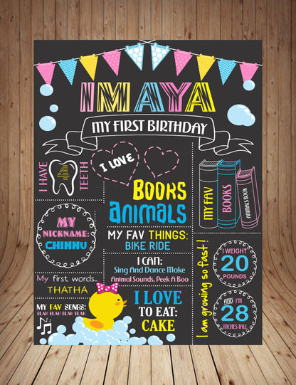 This Duck themed birthday chalkboard poster will be the perfect touch for your loved one's birthday party. It will be completely personalized with your loved one's details. Hang it up inside or outside, frame it or use it as a photo prop for very special and memorable birthday pictures!