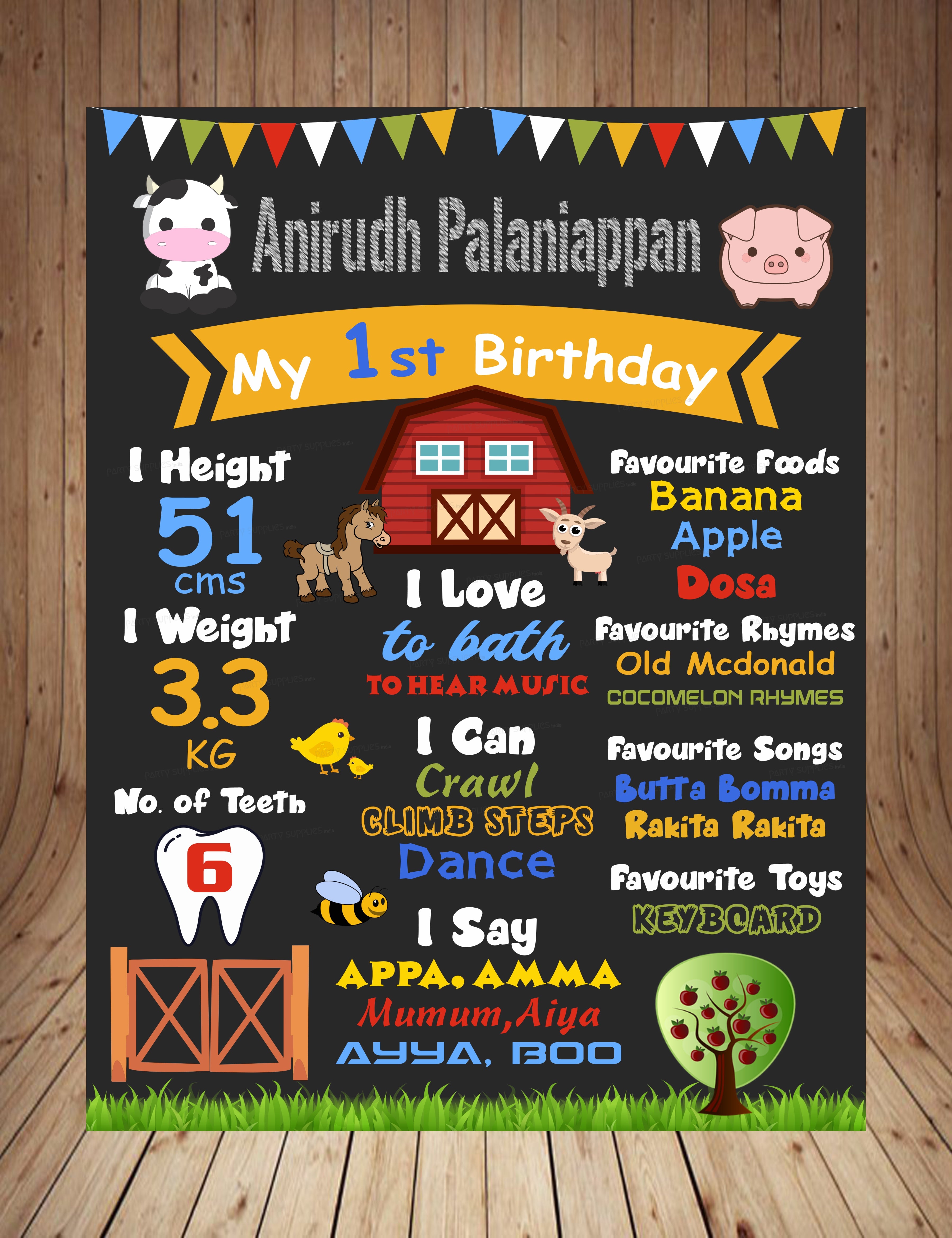 This Farm themed multi-coloured fonts birthday chalkboard poster will be the perfect touch for your loved one's birthday party. It will be completely personalized with your loved one's details. Hang it up inside or outside, frame it or use it as a photo prop for very special and memorable birthday pictures!