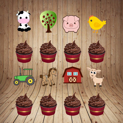 Create a unique dessert bar at your baby shower or birthday party with Farm Animals Dessert Cupcake Toppers. Dessert Cupcake Toppers look great on standard cupcakes or add them to other baked goodies such as brownies or donuts. Get creative and bring all your party ideas to life with Farm Animals Dessert Cupcake Toppers.