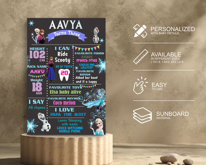 This Frozen movie themed birthday chalkboard poster will be the perfect touch for your loved one's birthday party. It will be completely personalized with your loved one's details. Hang it up inside or outside, frame it or use it as a photo prop for very special and memorable birthday pictures!