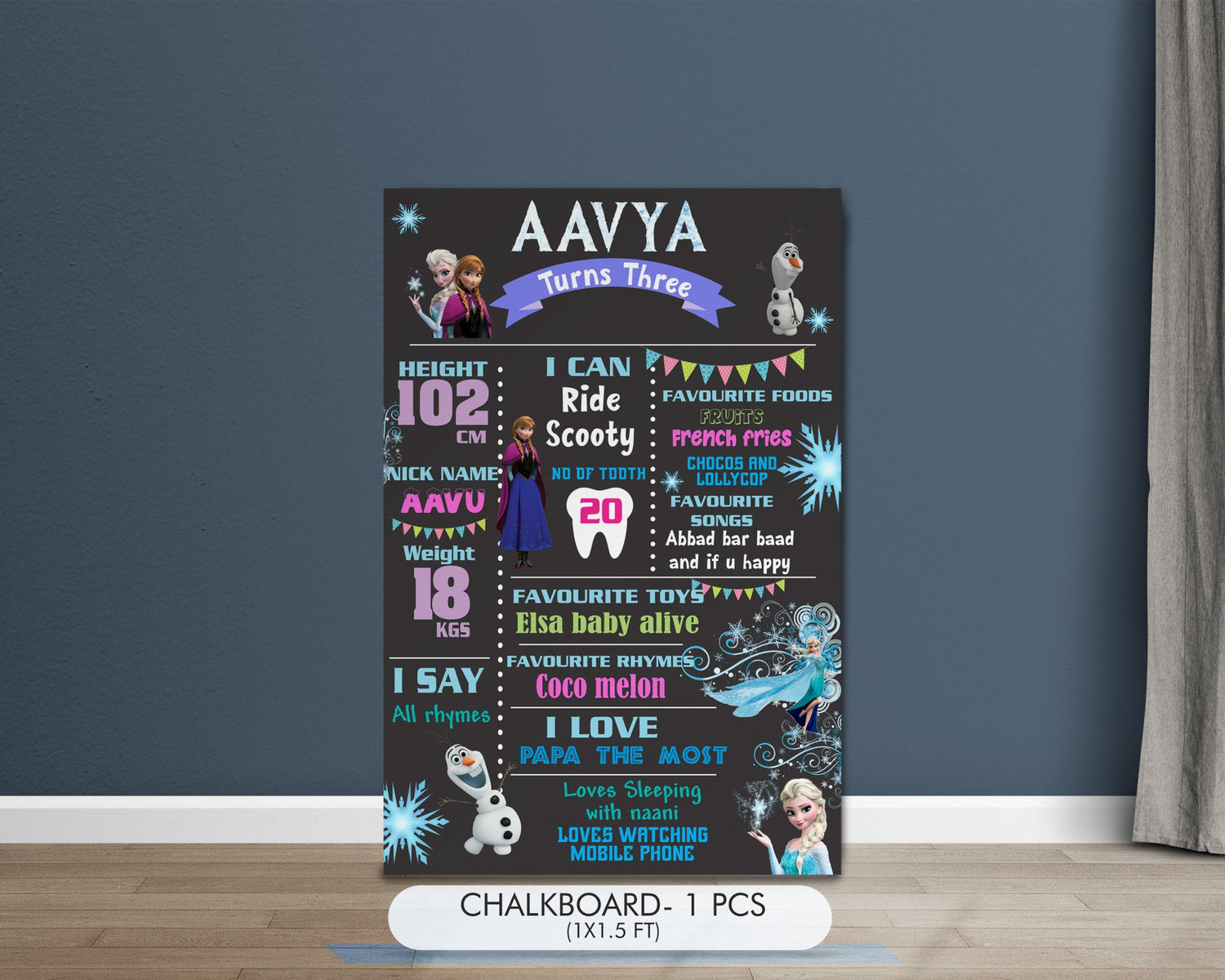 Use the bunting banner and door poster to welcome guests at the event’s front entrance. Then, suspend the danglers down your party table and hang the party decoration swirls above. Cake toppers make for impressive centerpieces or can be used as photo booth props. The cupcake toppers are cute and trendy. The chalkboard with the smallest of details about the child will be a memoir forever.The fairylight will help you decorate the photo booth or the stage elegantly. The cutouts personalised to the theme will enhance the color of the venue. The photobooth and photo props will help you flaunt the theme into pictures. Star foil balloon, number (age) balloon can be blown with helium safely. The 100 pieces of balloons that come with the kit can either be filled with air or with helium and made into bunches to adore the venue. Other items such as eyemasks, party hats personalised with the details provided, will help you have everything in coordination with the theme. The birthday candle, handpump, cellotape, curling ribbon, flag bunting will make your works easier in completing the decor. This easy to assemble party decoration kit includes everything you need to throw a celebration and create those goosebump moments.