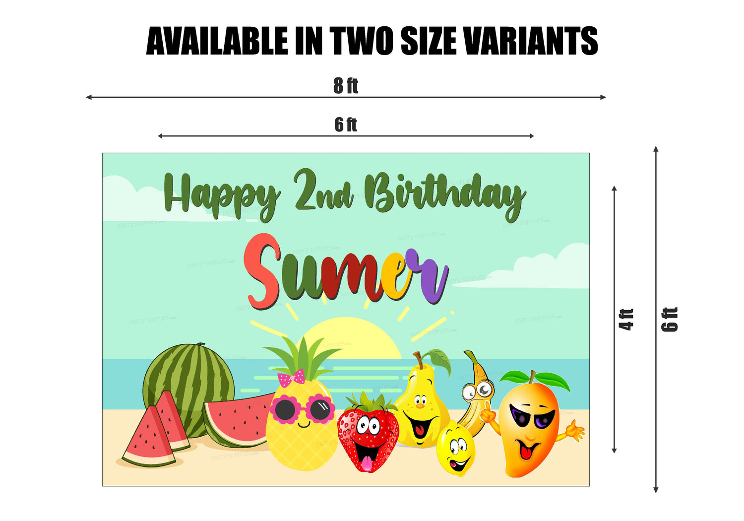 This Fruits themed backdrop with fruits of all colors with personalized typography is a colourful one to make kids and everyone see the land of Fruits spread before them.