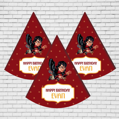 Bring the magical world of Harry Potter and all the magic to life at your celebration with these beautiful party hats.  Perfect for children's themed birthday parties. These hats in pretty ocean colours features Harry Potter in his flying broom.