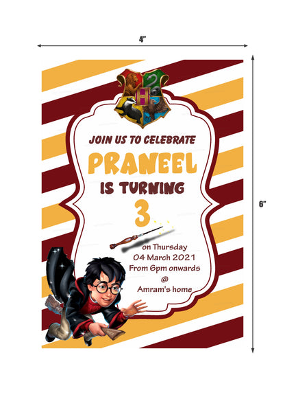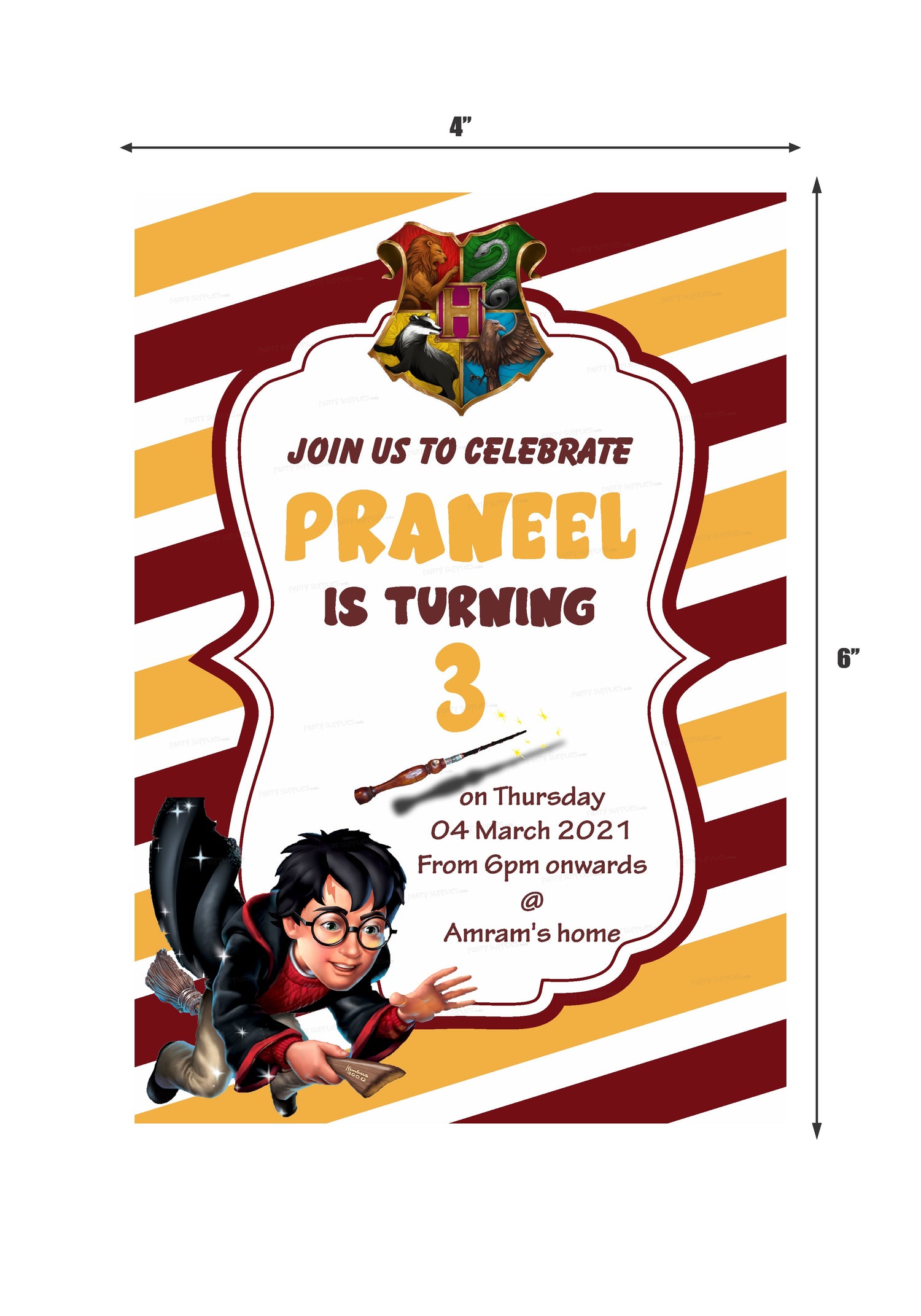 A party without an invite is no party. These Harry Potter Theme Invitations is a great way to round up your little one's friends! Personalize it with your details. Since the invite is customized and printed in-house we do not provide envelop.